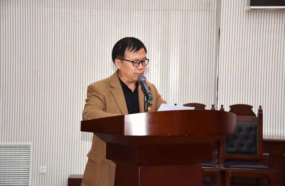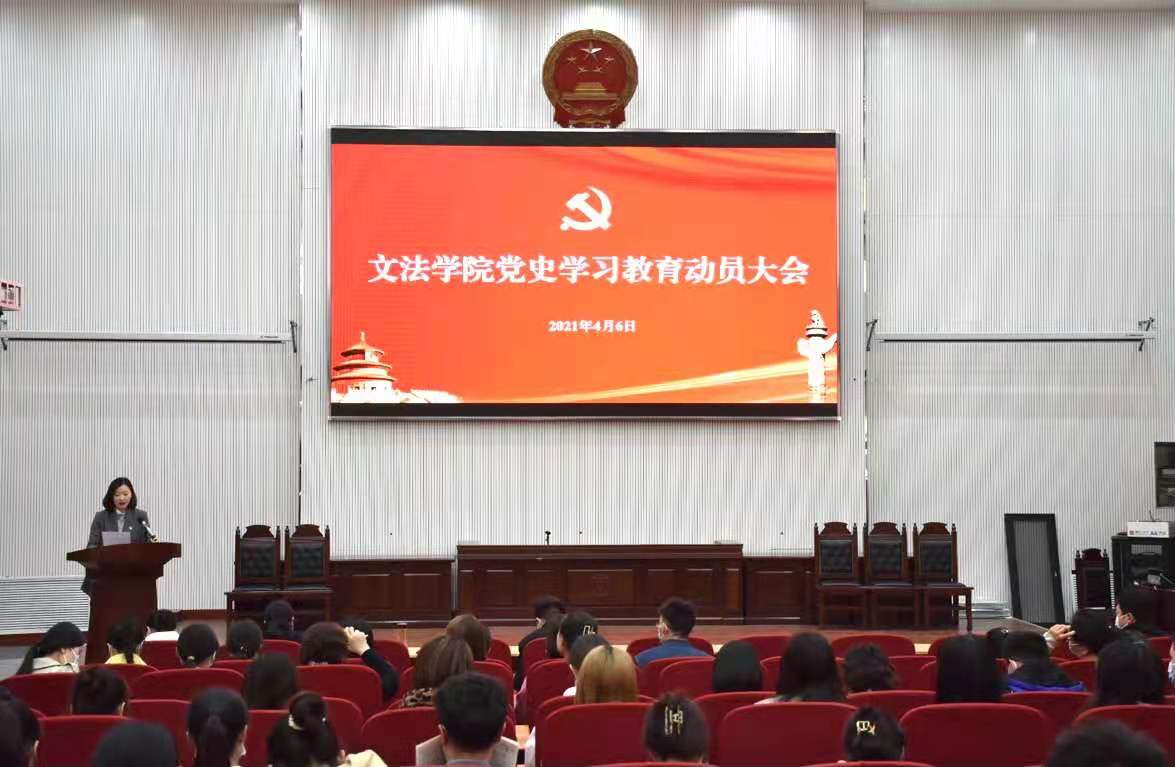 在龙子湖校区模拟法庭举行党史学习教育动员大会。学院全体领导班子及全体教师、学生党员参加本次大会。会议由院党委副书记余果主持。