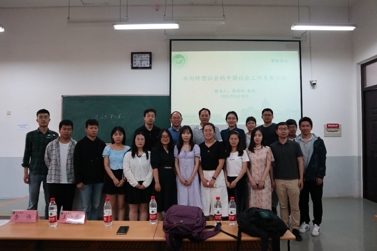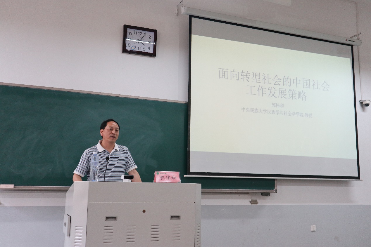 特邀中央民族大学民族学与社会学学院教授郭伟和于龙子湖校区教学楼E111做主题为《面向转型社会的中国工作发展策略》的学术报告。h漫