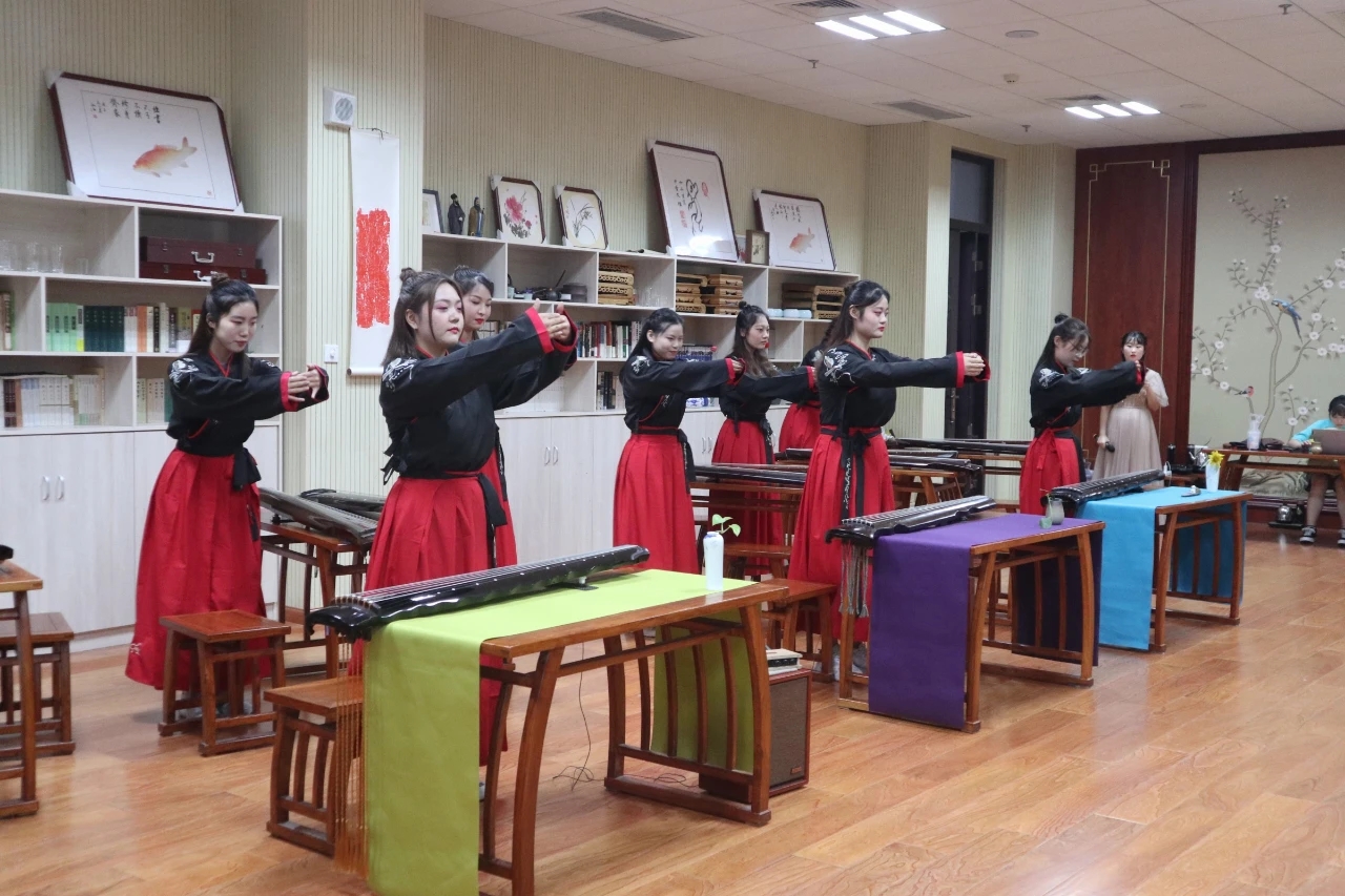 汇报表演从古筝独奏《高山流水》开篇,筝鸣袅袅,琴瑟翩翩,从容典雅,引人入胜。学生琴歌合奏《鸿雁》、《秋风词》,时而婉转,时而高扬,琴声阵阵,引人无限遐思。青青子衿,悠悠我心,琴歌合奏《子衿》将思念之情通过琴声娓娓道来。汉服表演也为现场观众带来一场视听盛宴。学生通过华丽的服饰、曼妙的舞姿、优雅的礼仪展示出来中华优秀传统文化的自信之美。