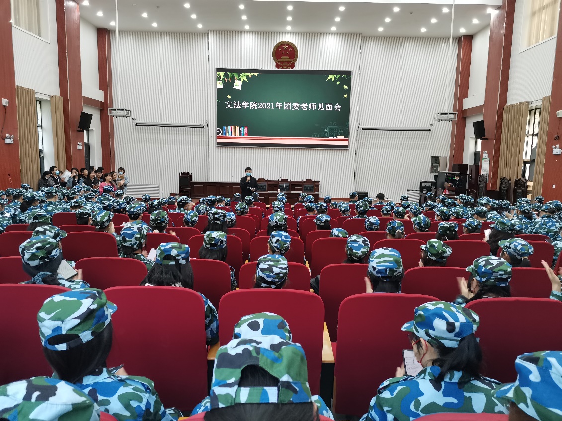 于模拟法庭举行2021级新生团委老师见面会暨新生入学教育专题宣讲,会议由院团委书记朱瑞萍、团委副书记王鹏举、2021级新生辅导员赵梦闪以及h漫