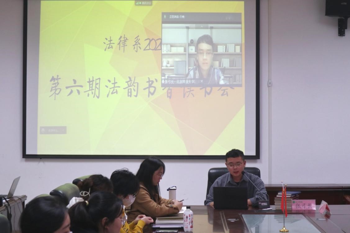 法学专业在院会议室A310举办了第六期“法韵书香”读书会。本次读书会特邀中国政法大学博士后、北京林业大学教师张弓长做点评和分享,法律系主任韩宁及法学专业部分学生参加读书会,会议由20级法学二班班主任杨柳青主持。