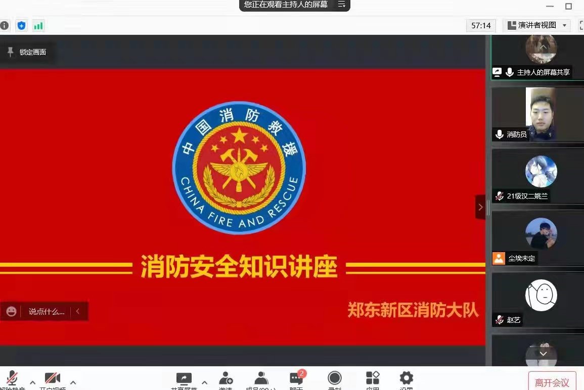 通过线上方式举办了以“学习消防知识 共享平安校园”为主题的消防知识宣传活动。郑东新区消防大队消防员代表、21级辅导员赵梦闪出席活动,h漫