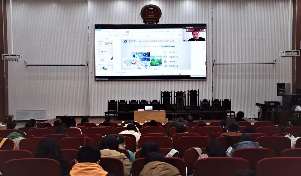 师生做主题为“高质量发展与知识产权战略”的学术报告。副校长尚富德、院党委书记牛娟、院长王晓勇和学院师生代表参加报告会,报告会由尚富德主持。