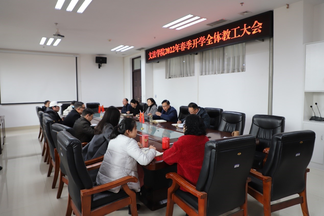 于龙子湖校区教学楼A310会议室召开2022年春季开学全体教工大会。学院领导班子和全体教师参加会议,会议由院长王晓勇主持。