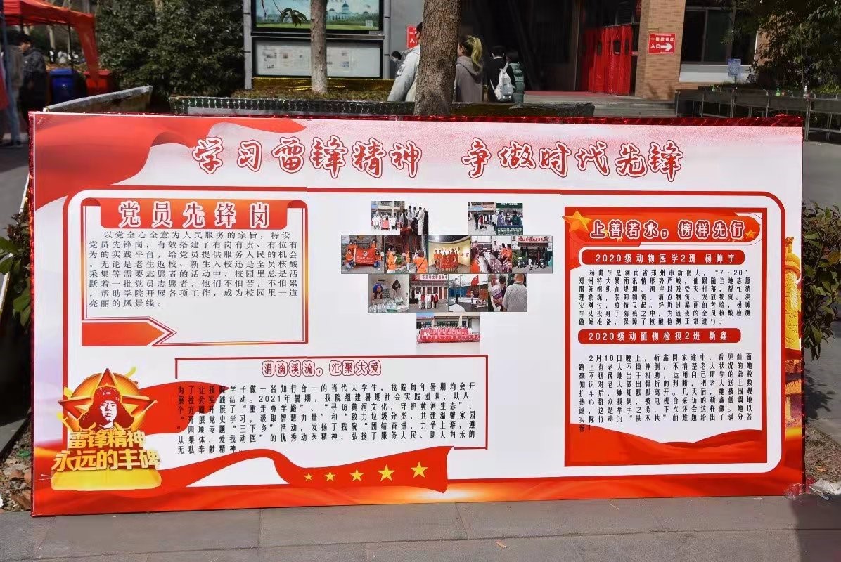 h漫 面向全体学生收集照片,制作照片墙展示好人好事,并于一餐文化广场放置糖果礼盒开展雷锋纪念日活动;举办“学雷锋,树新风”知识竞赛活动,结合时事热点,宣扬雷锋精神的时代内涵;绘制以雷锋纪念日为主题的板报,弘扬雷锋精神;组织学生志愿团进行校园劳动,打扫校园环境。