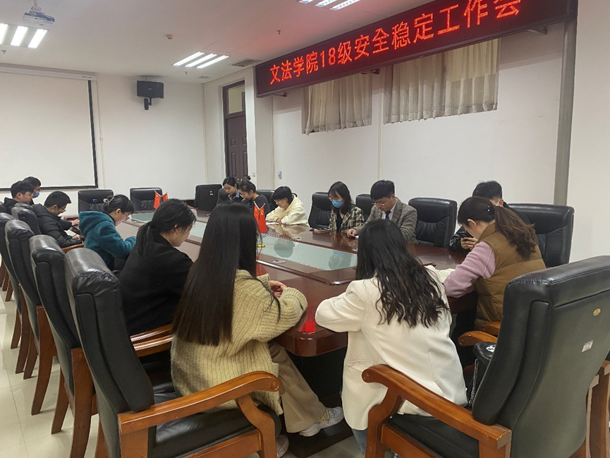 为保障校园安全稳定,推进新学期各项工作顺利进行,3月1日至3月6日,院团委书记朱瑞萍、团委副书记王鹏举和辅导员赵梦闪先后在院会议室面向所负责年级召开班长支书安全稳定工作会,各年级班长支书参加会议。