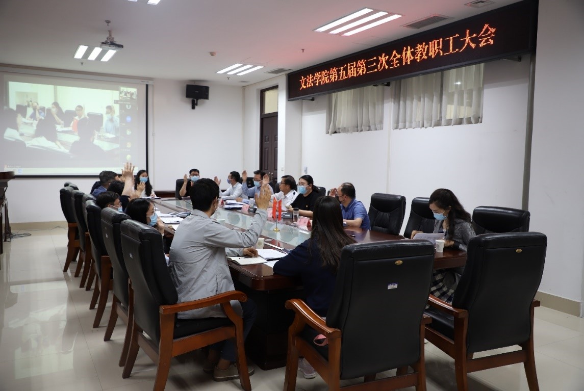 通过线上线下联动、主会场与分会场结合的方式在教学楼A310会议室召开学院第五届教职工大会第三次会议。全体教师参加会议,会议由院党委副书记余果主持。