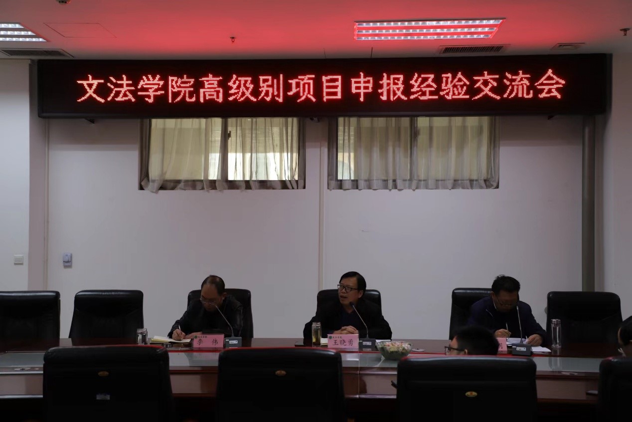 于龙子湖校区A310会议室举办高级别项目申报经验交流会。本次会议特邀国家社科基金项目的获得者副教授韩威、教育部人文社科项目获得者副教授王睿、博士生导师付梅作报告分享。院党委书记牛娟、院长王晓勇、副院长杨红朝、李伟等班子成员和师生代表通过线上线下结合的方式参加报告会。会议由李伟主持。