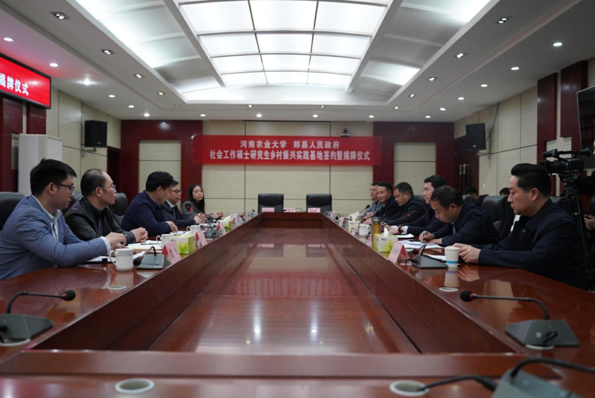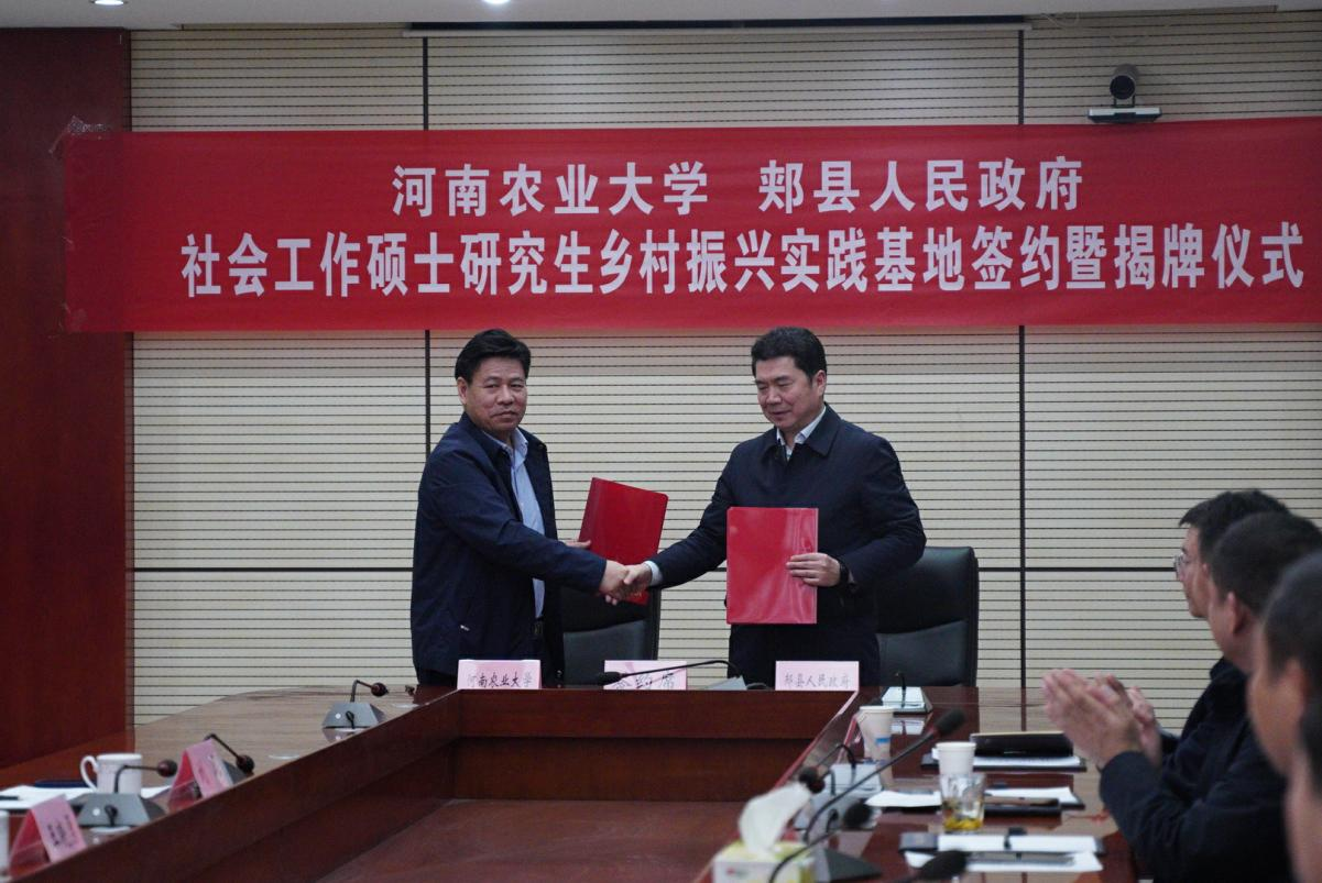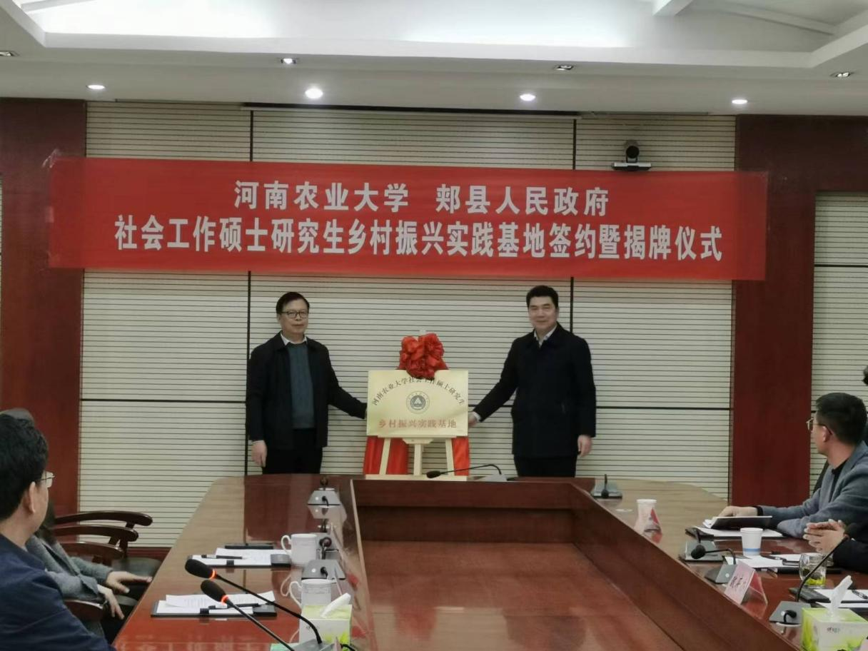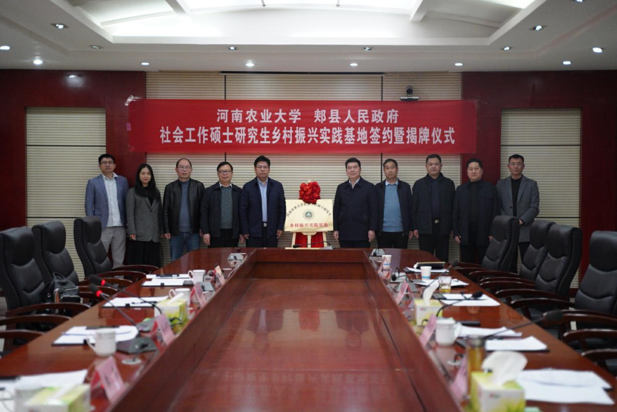 与郏县人民政府举行社会工作硕士研究生乡村振兴实践基地签约暨揭牌仪式。郏县副县长李政杰、郏县政府办、农业农村局、乡村振兴局等负责领导出席仪式,h漫