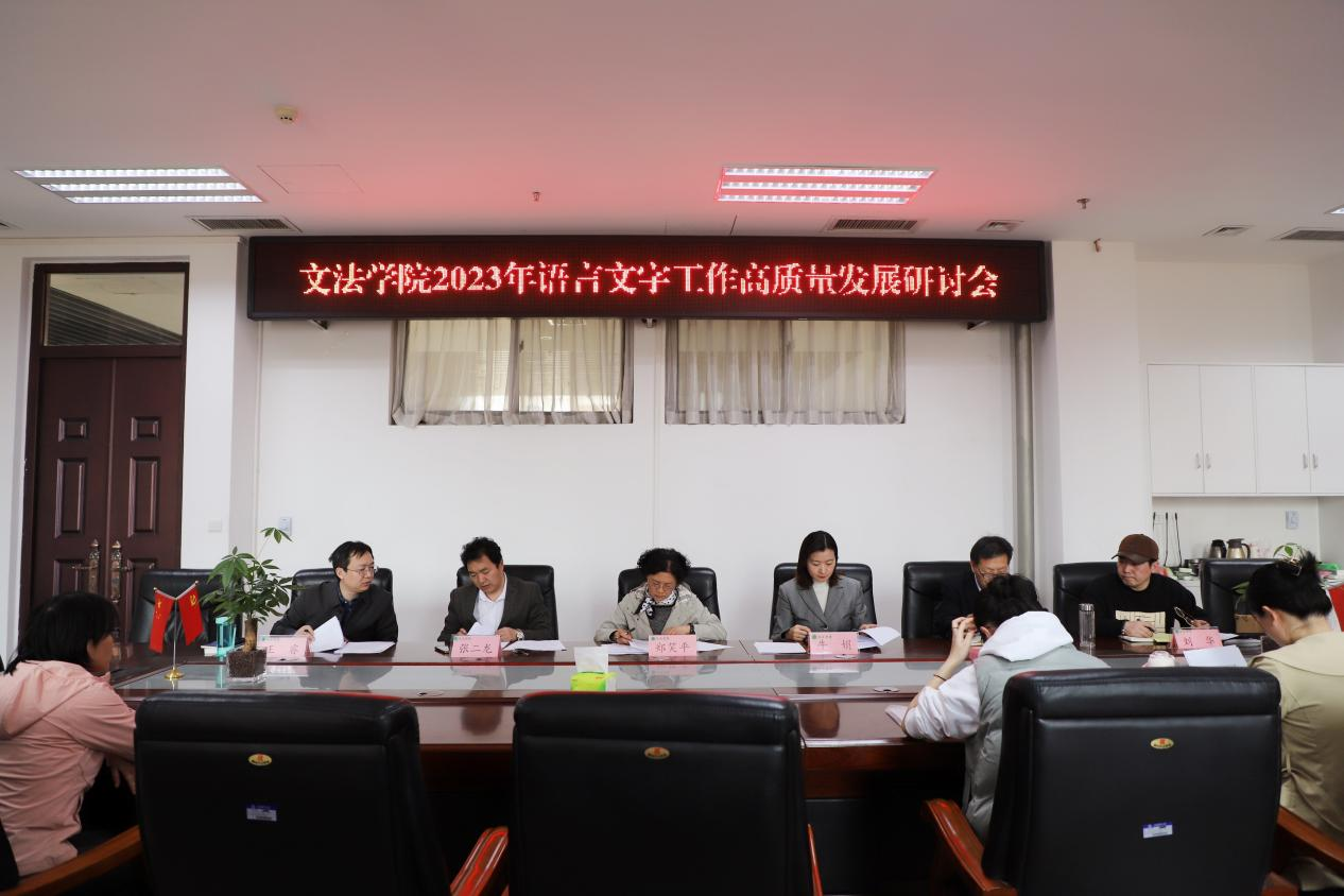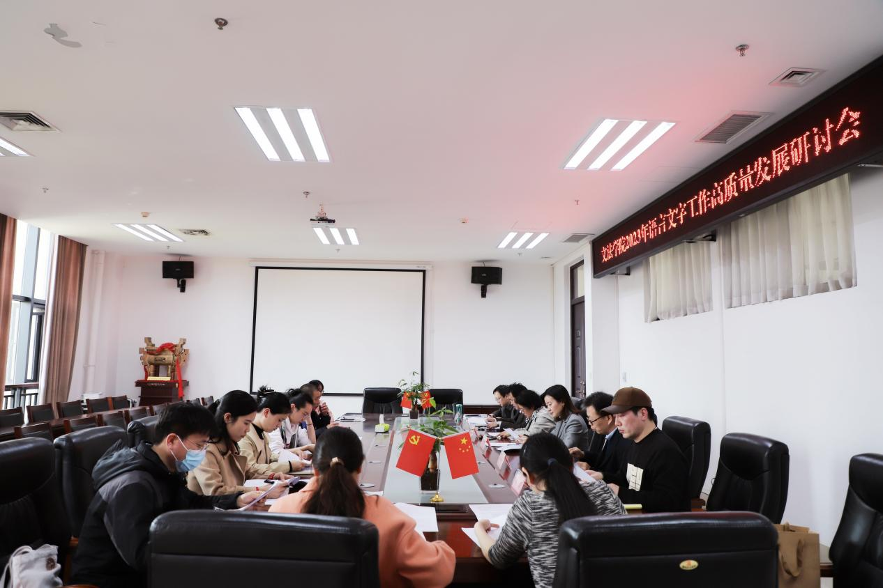 在教学楼A310会议室举行2023年语言文字工作高质量发展研讨会,学院党委书记牛娟、校级督导郑笑平、学工部副部长张二龙、副院长杨红朝与会并指导工作。语言文字工作主办部门汉语言文学系教师参加会议,汉语言文学系主任刘华主持会议。