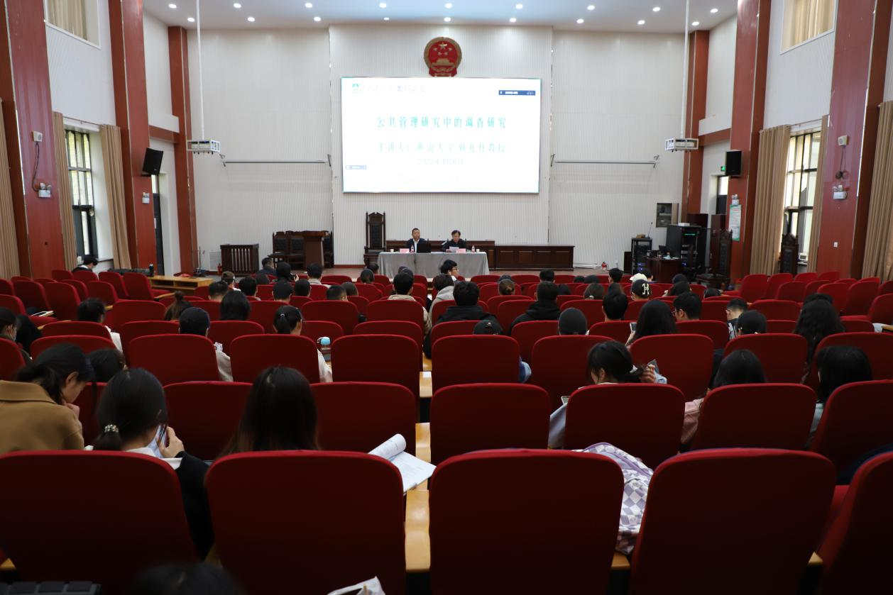 师生作题为“公共管理研究中的调查研究”的学术报告。报告会由院长王晓勇主持,行政管理系主任管煜武和学院部分师生参加报告会。韩兆柱从党中央号召大兴调查研究之风的重要意义引入,结合自己参加公共管理案例大赛的赛经历,阐述了公共管理专业开展调查研究的方法与技巧,分析了在实地调查过程中遇到的困难与障碍。他讲到,社会科学研究离不开调查研究,社会科学研究在于解释社会现象和规律,帮助人们了解社会状况,制定和实施有效的政策,促进社会和谐发展。他指出,我国一直坚持调查研究工作,在社会主义革命与建设时期,调查研究工作具有不可替代的根本性作用。他强调,文科生要想提高自己的学术能力,要真正扑下身子,深入实践,才能求得真知。