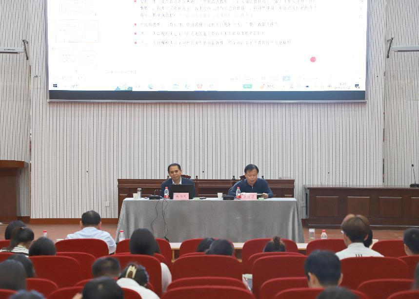 邀请中国社会科学院经济社会发展研究中心主任、中国政治经济学学会会长、中国社会科学院研究员、博士生导师侯为民教授为师生作主题为《中国式现代化的历史生成与超越》学术报告。副校长郭战伟主持报告会,院长王晓勇和学院师生代表参加报告会。