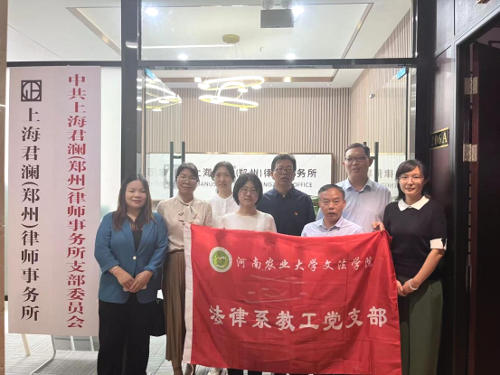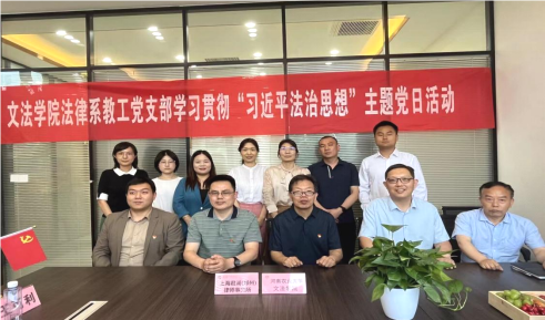 随后,双方举行了学习贯彻“习近平法治思想”主题党日活动。杨新勤介绍了律所党建的基本情况,并结合自身的办案经验,解读习近平法治思想对律师执业的具体指引,特别强调律师职业一定要坚持政治过硬,切实落实党建引领业务。韩宁介绍了法律系教工党支部党建的基本情况,强调在学习贯彻习近平新时代中国特色社会主义思想主题教育的背景下,举行此次主题党日活动意义重大。虽然律所和系部在具体党建内涵上有一定的差异,但党建引领业务是双方的共同点,学透、弄懂习近平法治思想,将极大推动党建引领业务走向深入。双方支部党员围绕习近平法治思想的学习心得体会进行了深入的交流,并一致认为,目前具体践行习近平法治思想的实践形式就是通力合作,进一步提高法学人才培养质量,共同推动毕业生就业工作。