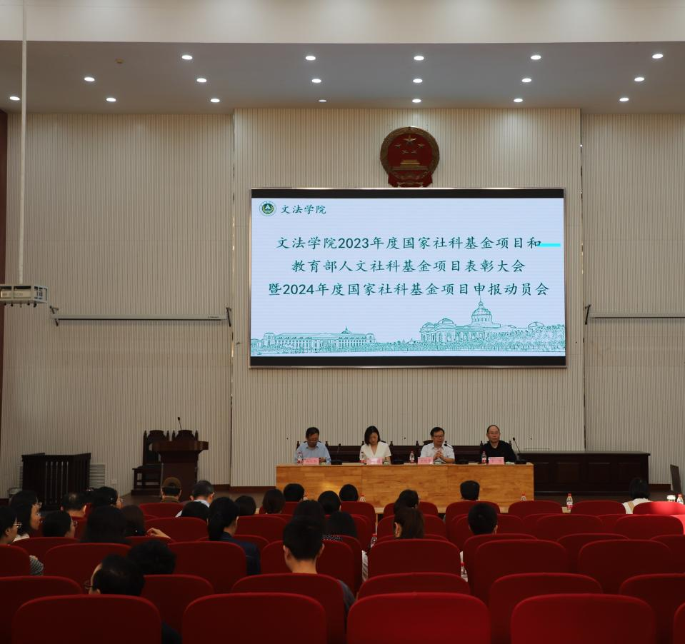 2023年度国家社科基金项目和教育部人文社科基金项目表彰大会暨2024年度国家社科基金项目申报动员会。学院党委书记牛娟、院长王晓勇、副院长杨红朝、副院长李伟及全体教职工参加会议。会议由王晓勇主持。