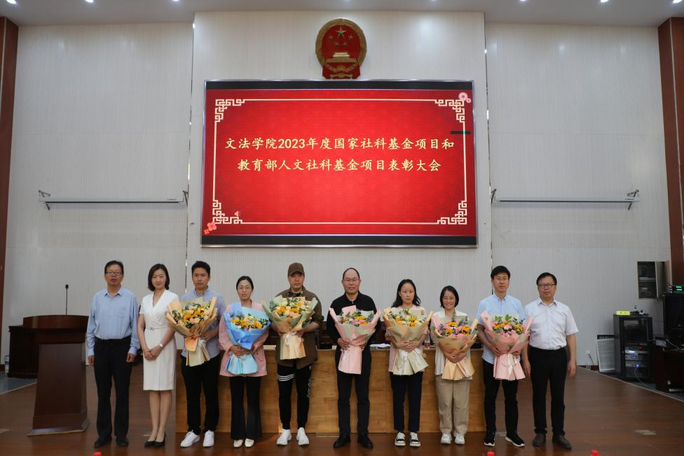 会上,王晓勇宣读h漫 2023年度国家社科基金项目和教育部人文社科基金项目的获批情况。牛娟、王晓勇为获批教师送上鲜花并合影留念。