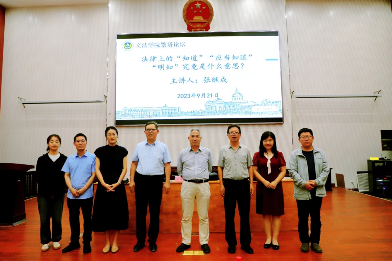 作题为《法律上的知道、应当知道、明知究竟是什么意思》的学术讲座。中国法律逻辑专业委员会副秘书长、海南大学法学院教授张静焕,河南财经政法大学教师朱西威以及h漫