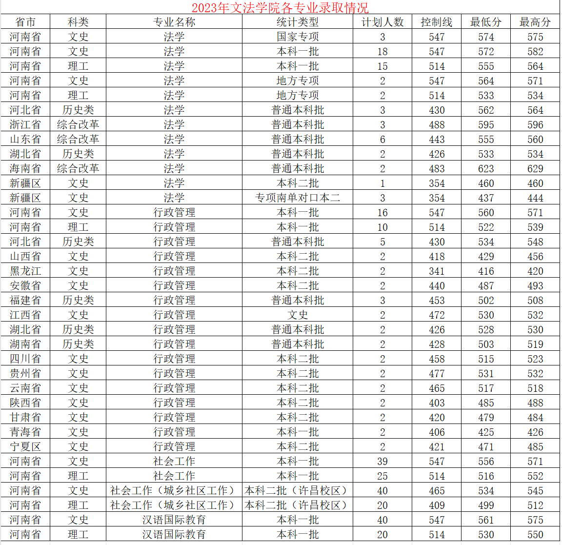 2023年h漫 各专业录取情况