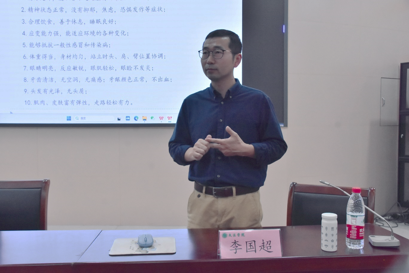社会学系心理学博士李国超老师主讲,2023级全体学生参与。活动由辅导员王卓锐主持。