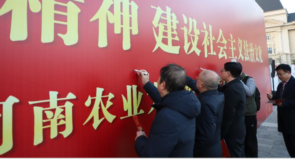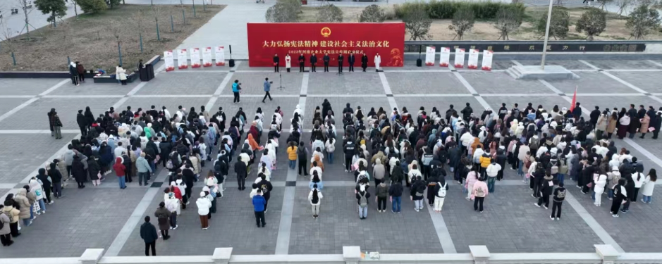 在龙子湖校区中心广场举办了以“深入学习宣传习近平法治思想 大力弘扬宪法精神”为主题的宪法宣传周启动仪式。校党委副书记游舸,副校长郭战伟,校党委委员、宣传部长邓振营,校党委学生工作部部长、学生处处长徐峰,校团委书记贾云飞,校党委研究生工作部部长代莉,校政策法规办公室主任闫俊萍,h漫