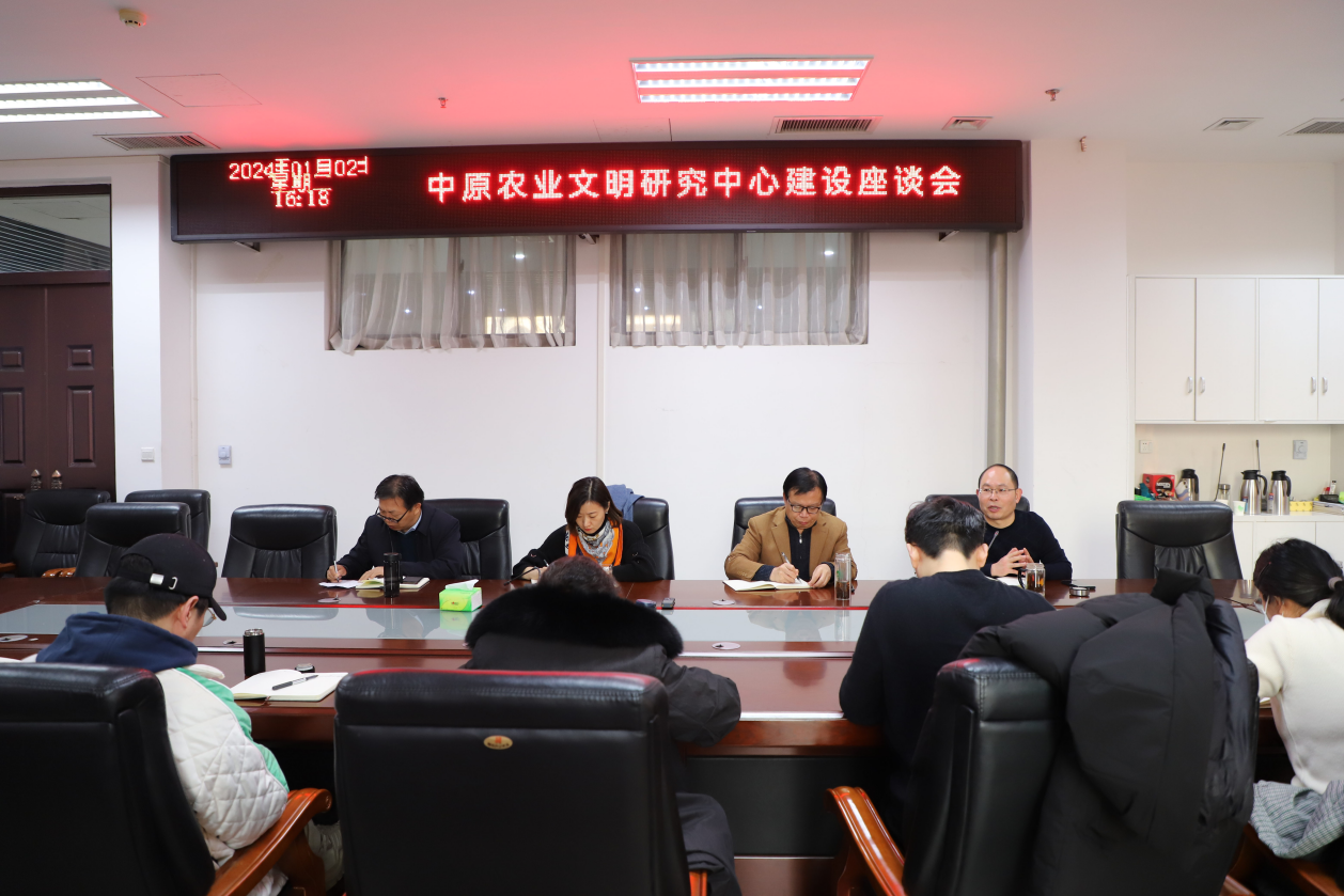 在会议室召开中原农业文明研究中心建设座谈会。学院领导班子及各系部主任参加会议,副院长李伟主持会议。