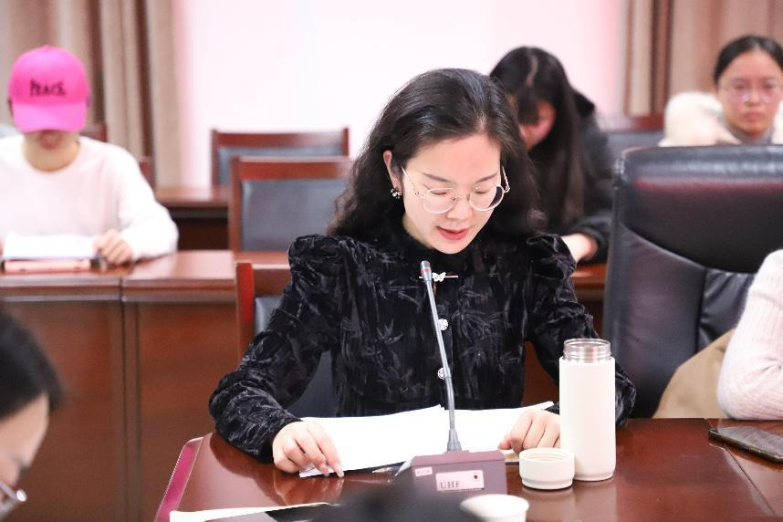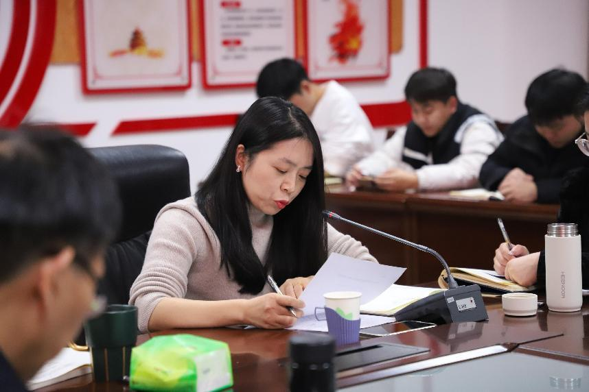 本科生第五党支部书记赵梦闪从“抓学习,强化理论武装”“抓组织,筑牢战斗堡垒”“抓融入,党建业务共赢”三个方面总结支部工作情况。表示要强化支部书记和支部委员的政治责任,扛稳抓牢支部建设,不断提升基层党建工作质量和水平。