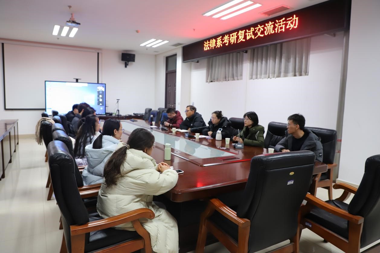 学生更有针对性地准备考研复试,学院于3月6日在繁塔楼A座310会议室通过线上线下相结合方式举行法律系考研复试交流活动。h漫