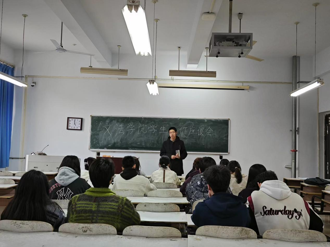 分别于龙子湖校区A310会议室及桃李园校区桃西楼201召开学生工作座谈会。学院党委副书记余果、团委书记王鹏举、团委副书记赵梦闪、辅导员盛戈及2022级班长支书和2023级学生代表参加会议。