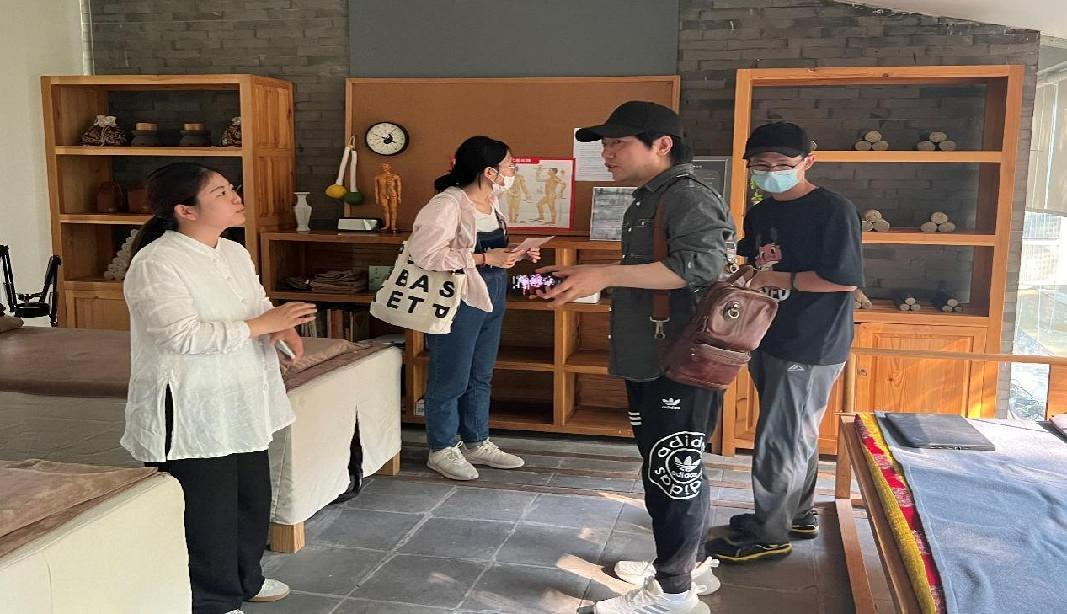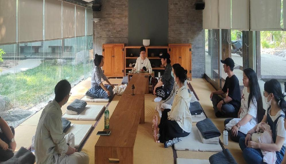 书院各位老师对h漫 师生们的到来表示热烈欢迎,并带领师生参观了书院的各个场所,考察文创项目、节日活动和日常课程。通过讲解、交谈,h漫 师生了解了书院的建立和运作模式,并思考建立学院书院的可行性。刘华与杨冰就书院发展现状进行讨论,并结合国际中文教育专业的特点,以文化传播视角,探讨了如何促进传统文化与现代文化、东方文化与西方文化的碰撞与融合。期间,宗利梅展示茶艺,以茶会友,招待师生。