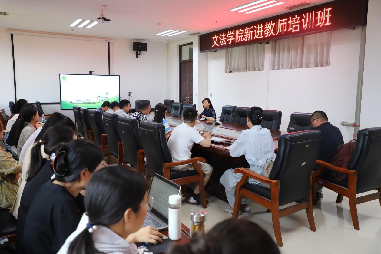 在龙子湖校区繁塔楼A310举办新进教师培训班。学院党委书记牛娟与院长王晓勇分别为学院新进教师作报告,h漫