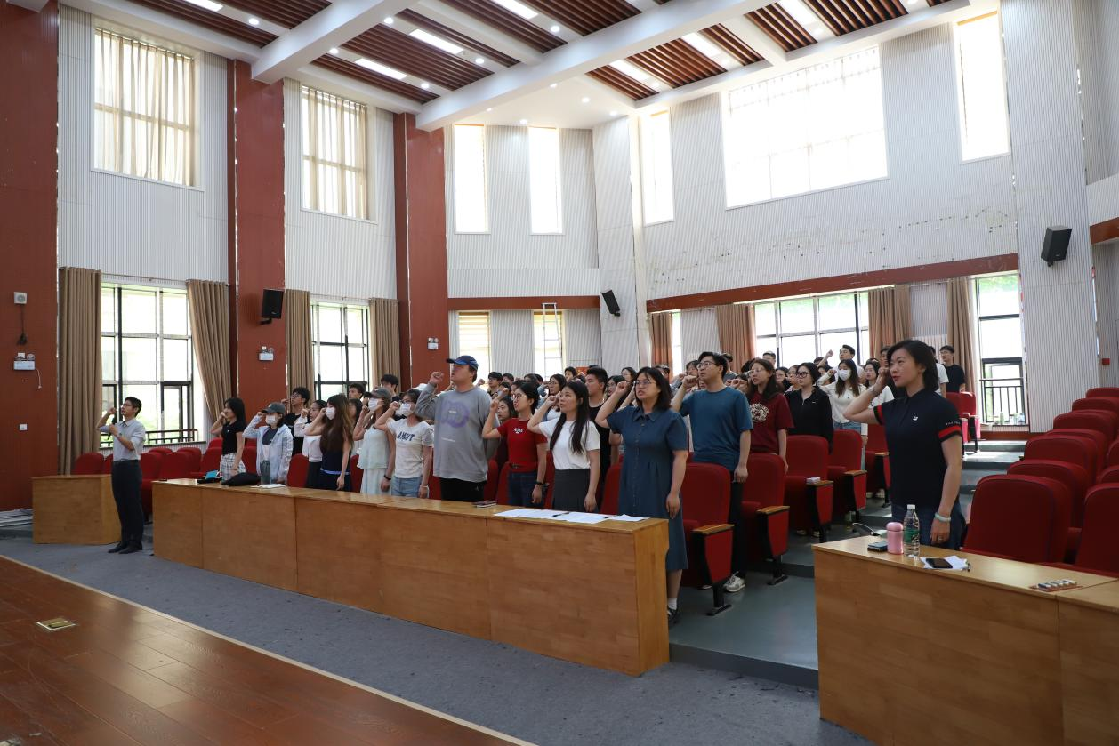 本科生第一党支部书记王鹏举带领全体党员重温入党誓词