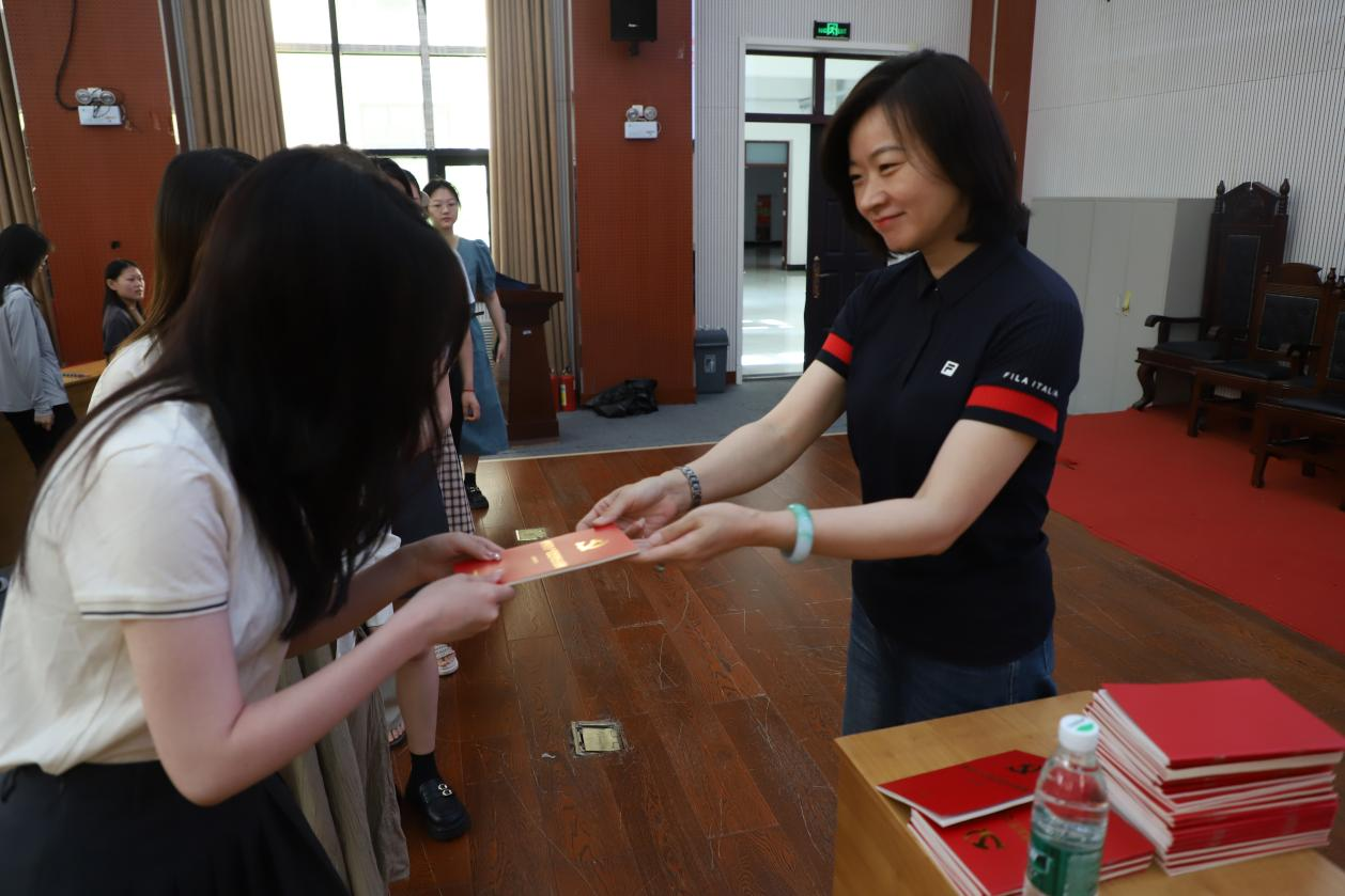 院党委书记牛娟向全体毕业生党员赠送《中国共产党纪律处分条例》
