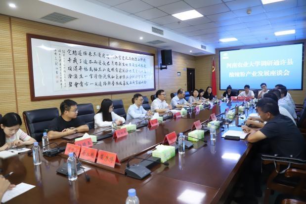 院长王晓勇,副院长李伟,农业管理硕士学位点负责人管煜武,农业管理硕士生导师呼连焦以及部分农业管理专业研究生赴开封市通许县开展酸辣粉产业专题调研,并进行座谈交流。通许县县委副书记、县长憨振强,县领导李振举以及相关部门负责人陪同调研。