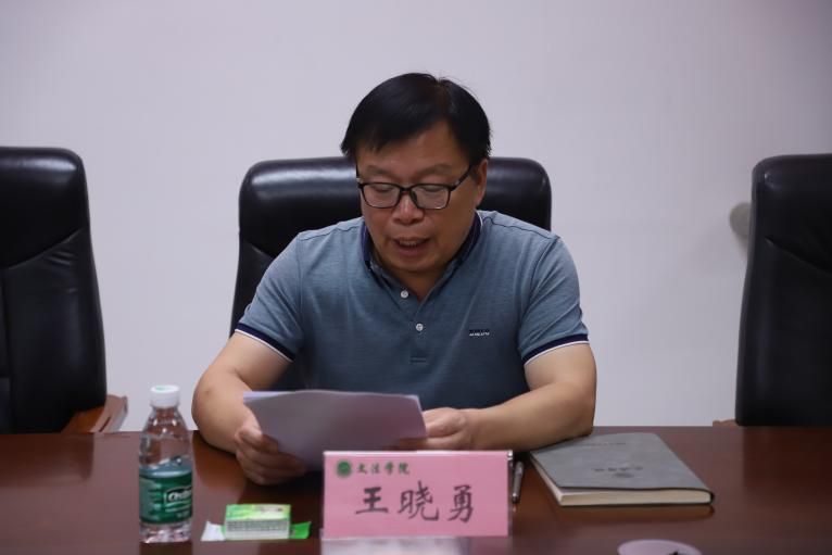 为师生做学术报告。院长王晓勇,副院长杨红朝,法律系教师、法律硕士研究生及法学本科生代表参会。会议由王晓勇主持。