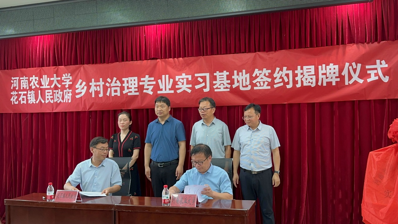 与禹州市花石镇政府在花石镇河东张村举行了乡村治理专业实习基地的签约揭牌仪式。这是双方深化合作、共同培养乡村治理专业人才的重要举措。禹州市委组织部副部长张永强、禹州市委组织部部务委员盛毅珂、禹州市花石镇党委副书记、镇长霍振辉,我校教务处副处长王金铎、h漫