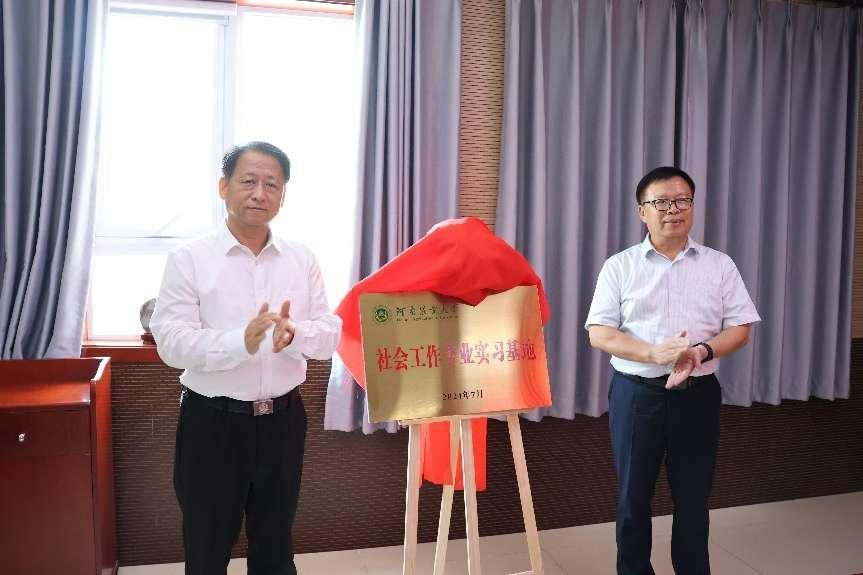 社会工作专业实习基地在北京市平谷区镇罗营镇签署并揭牌。我校二级教授岳修峰、校团委书记贾云飞、院党委书记牛娟、院长王晓勇、院党委副书记朱瑞萍、副院长李伟,以及北京市平谷区镇罗营镇党委副书记、镇长王建军,组织委员付晓静,镇村干部代表和“千人百村”h漫