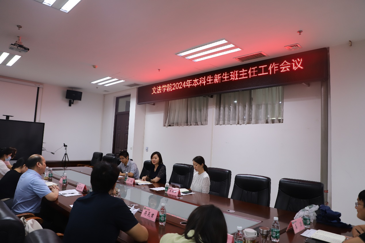召开2024级本科生新生班主任会议,院党委书记牛娟、团委书记王鹏举以及全体2024级本科生班主任参加会议,会议由院党委副书记朱瑞萍主持。