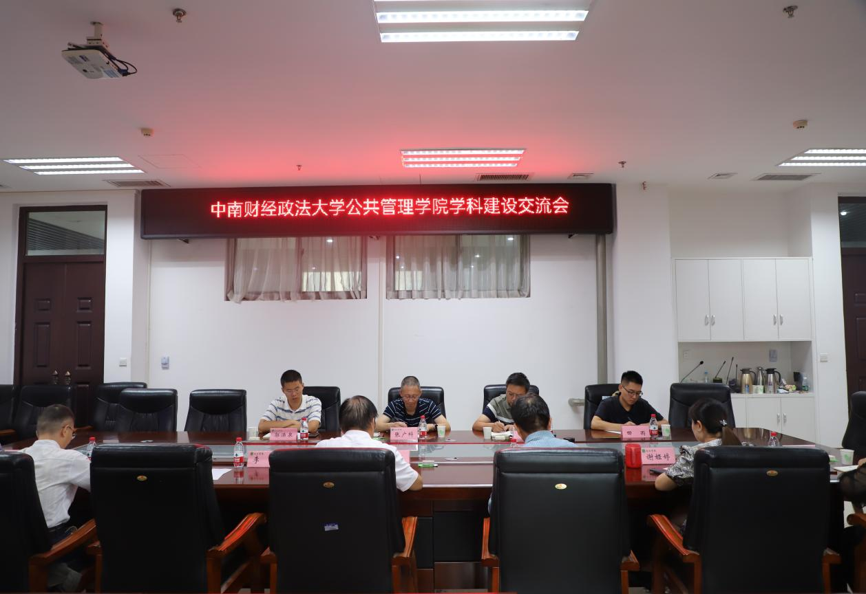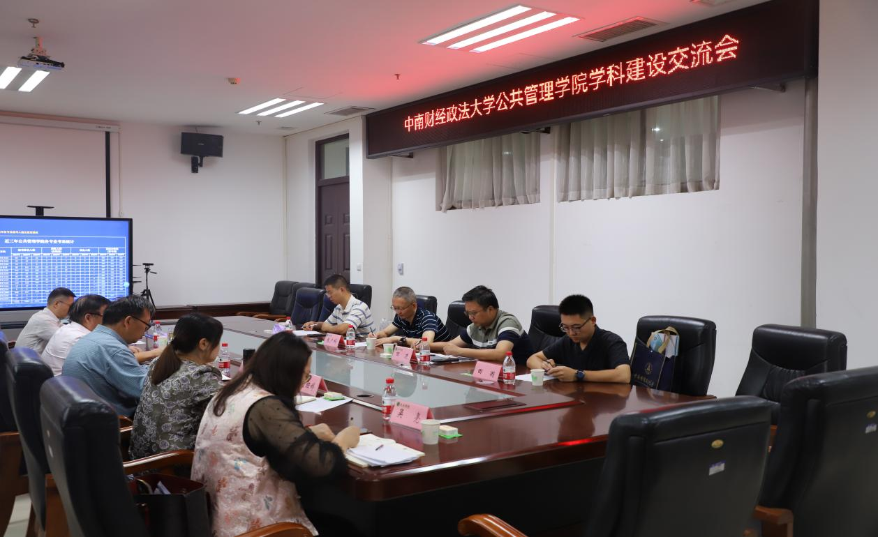 在龙子湖校区A310会议室,特邀中南财经政法大学公共管理学院院长张广科,副院长田进,MPA教育中心办公室主任郭源泉,研究生办公室教学秘书田雨,召开中南财经政法大学公共管理学院学科建设交流会。h漫