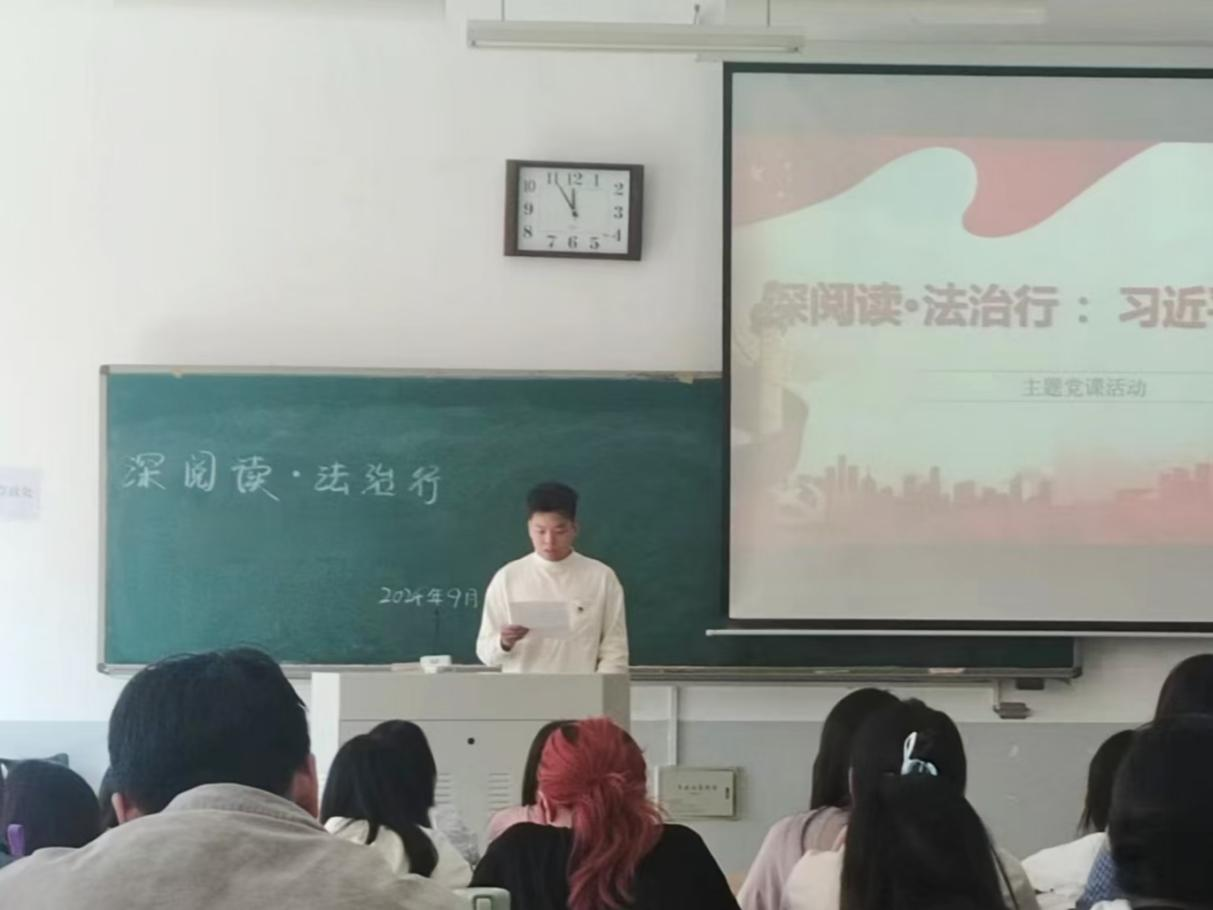 本科生党支部于龙子湖校区教学楼E107开展了以“深阅读·法治行:习近平法治思想领航”为主题的第二次党课活动。