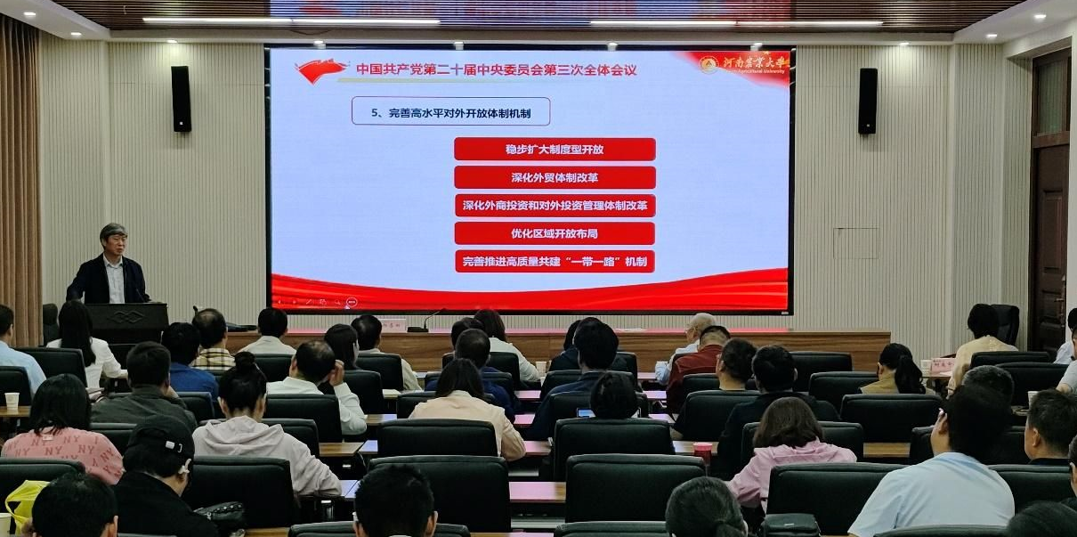 杨喜田围绕党的二十届三中全会审议通过的《决定》文本、习近平总书记在党的二十届三中全会上的讲话精神、h漫 改革发展实践探索的有关经验和启示三个方面,系统地解读阐释了党的二十届三中全会的精神实质、核心要义和实践要求,深入浅出地带领大家深入地理解了党的二十届三中全会的重大时代意义和深远历史影响,以及党的二十届三中全会为我校高质量发展带来的历史性发展契机。