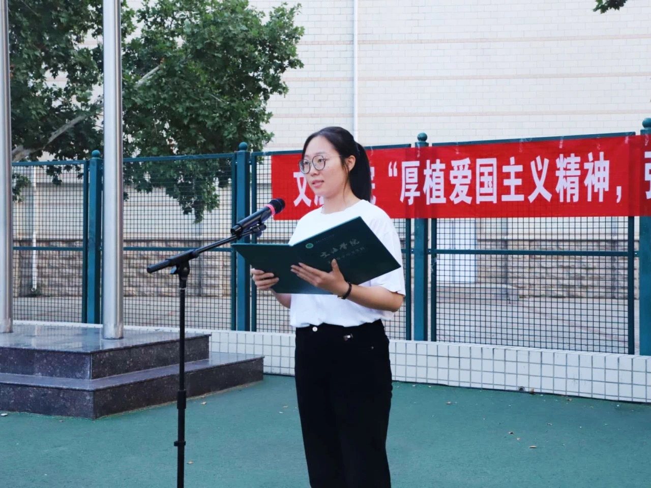 于文化路校区田径场举办“厚植爱国主义精神,弘扬中华优秀传统文化”主题升旗仪式。院党委书记牛娟、党委副书记朱瑞萍、院辅导员及2024级全体新生参加活动。仪式由朱瑞萍主持。