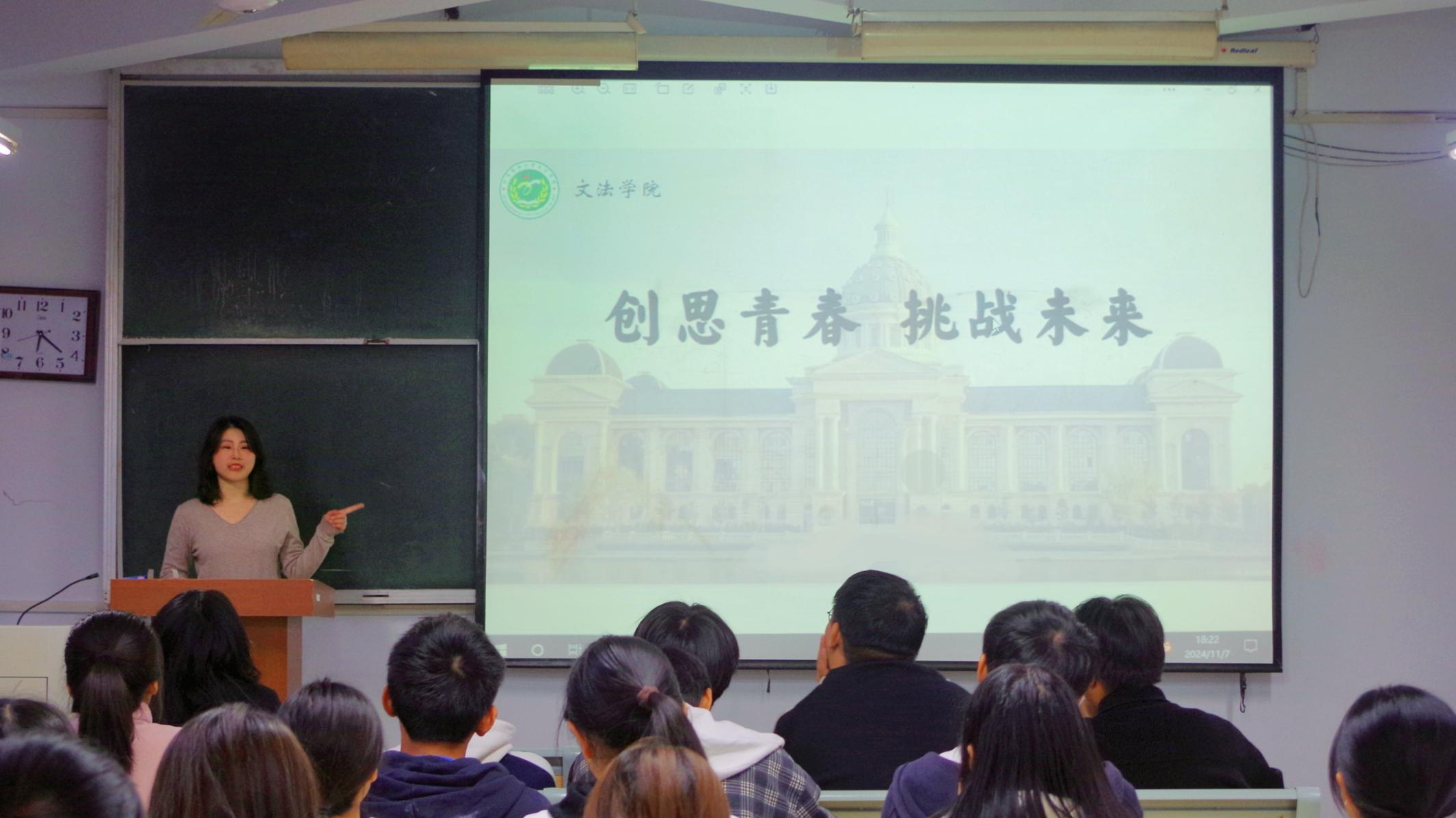 2024级法学专业1班在桃李园桃西楼306举办“创思青春,挑战未来”主题班会。h漫