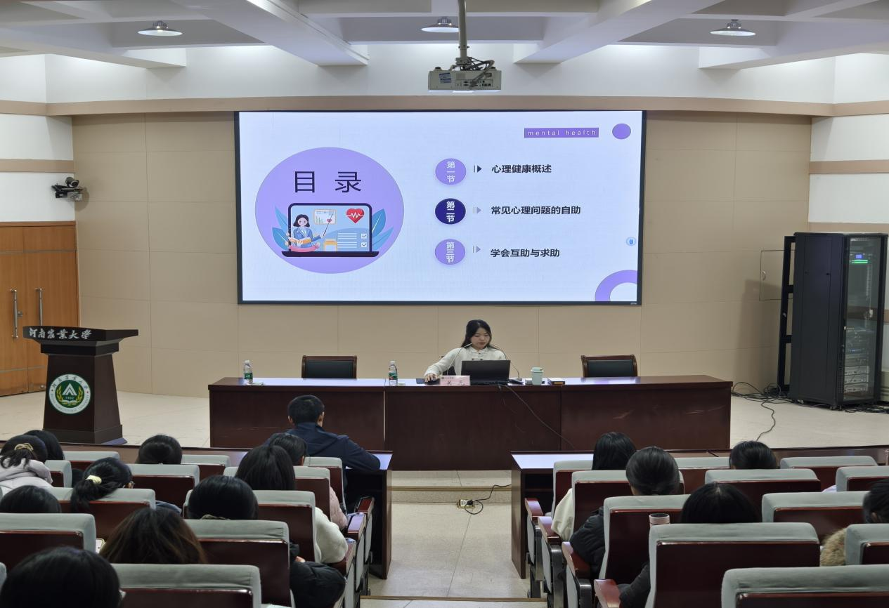 于文化路300人报告厅举办2024级新生心理健康教育讲座,本次讲座邀请学校心理健康教育中心专职教师关元作为主讲老师,学院团委书记王鹏举主持。