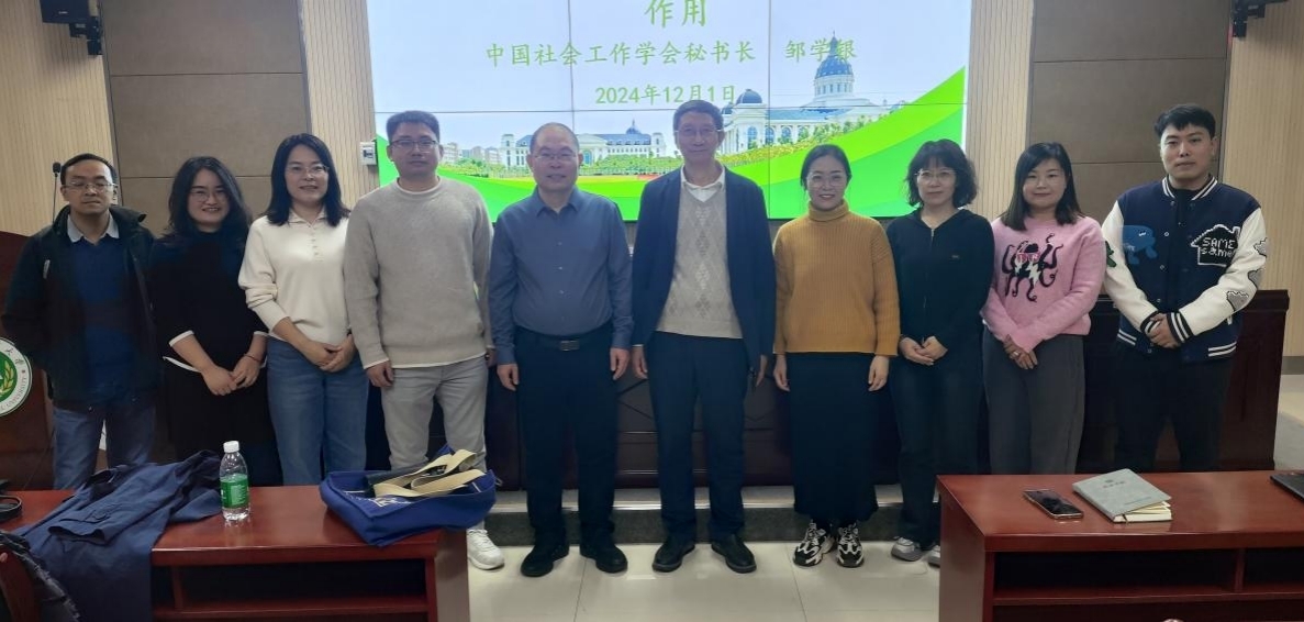 于繁塔楼A324会议室邀请中国社会工作学会秘书长邹学银做“社会工作职能部门的生成逻辑及作用”专题学术报告。报告由学院副院长李伟主持,社学系主任刘风及部分教师、社会工作专业硕士研究生及本科生等百余名师生参加了此次学术报告会。