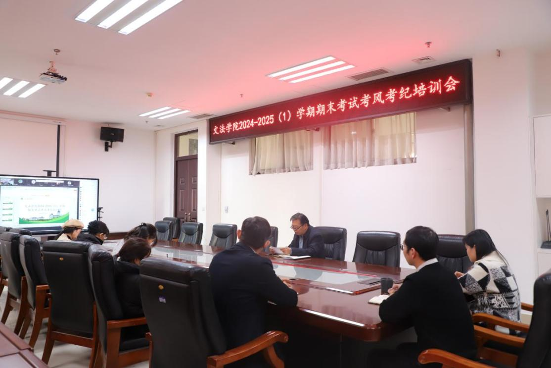 在学院会议室310召开2024-2025第一学期期末考试考风考纪培训会,这次会议采取线上线下相结合的形式,h漫