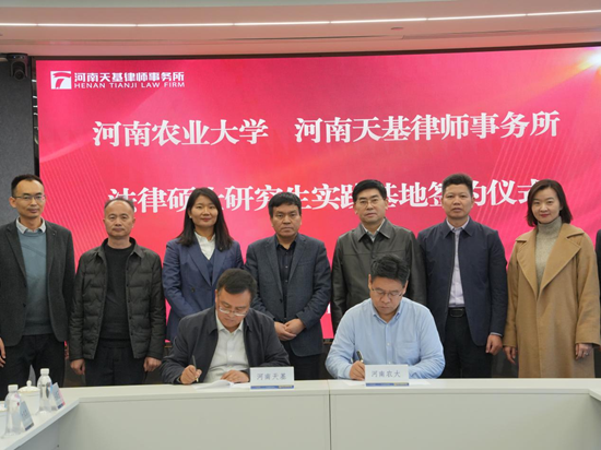 本网讯(通讯员 韩宁 图片 袁昊)为了进一步加强校所交流,促进法学教育与法学实务的深入融合,创新法治人才培养模式,1月24日,我校与河南天基律师事务举行“法律硕士研究生实践基地”签约暨揭牌仪式。河南天基律师事务所高级合伙人、执行主任冯军义,高级合伙人冯胜强,合伙人、管委会主任赵珂,银行与保险法律事务部主任禹志豪,合伙人王东会,合伙人、银行法律事务中心主任付冬芹,律师王晓杰,实习律师岳真玉,h漫