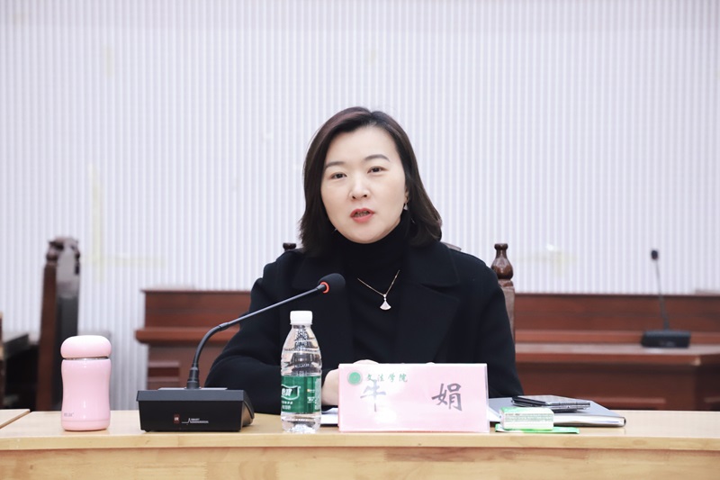 在模拟法庭召开师德师风教育大会。院党委书记牛娟、党委副书记朱瑞萍、副院长杨红朝、副院长李伟出席会议。本次会议由党委副书记朱瑞萍主持,h漫
