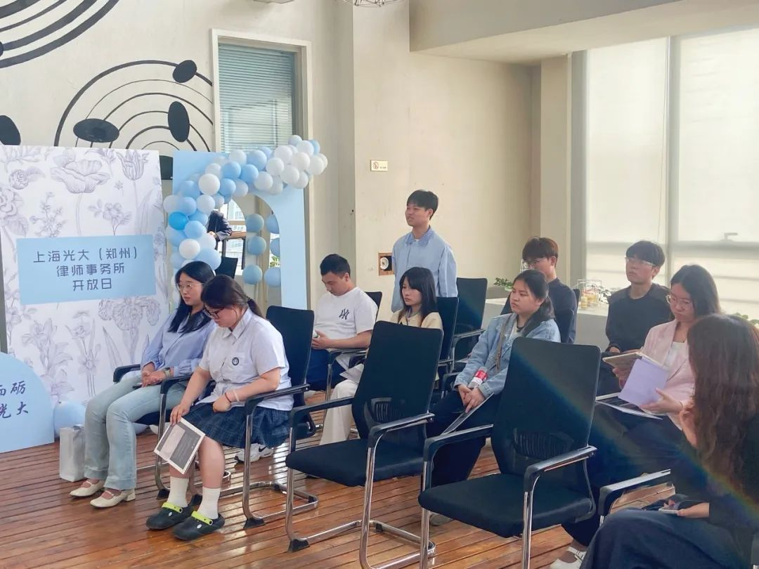 活动在主任助理、实习律师王丽君的主持中拉开序幕。品宣部主任王丹向到访者详细介绍了律所发展历程、h漫、业务领域等,引领到访学生参观律所,结合客户墙、荣誉墙、东西方法学家文化墙着重讲述光大律所服务理念和价值观。参观结束后,律所特别准备了精致的茶歇环节,同学们与律师们围坐畅谈。从探讨法律实务到分享执业经验,轻松的氛围拉近了彼此距离,也让“律所温度”悄然围绕到访学生。中共上海光大(郑州律师事务所)党支部副书记、建工部主任师树源向大家介绍光大郑州所建工团队,分享自己在上市公司的法务经历和律师执业经验。鼓励参观学生,加强自身法律知识学习,同时积极投身社会法律实践,以便学业结束后更好对接工作需求。在互动环节,到访学生积极提问,光大律所合伙人代表李琦主任从实习律师培养计划、如何面对工作中挫折和消极情绪等大家关心的问题耐心地给予解答并提出建议。