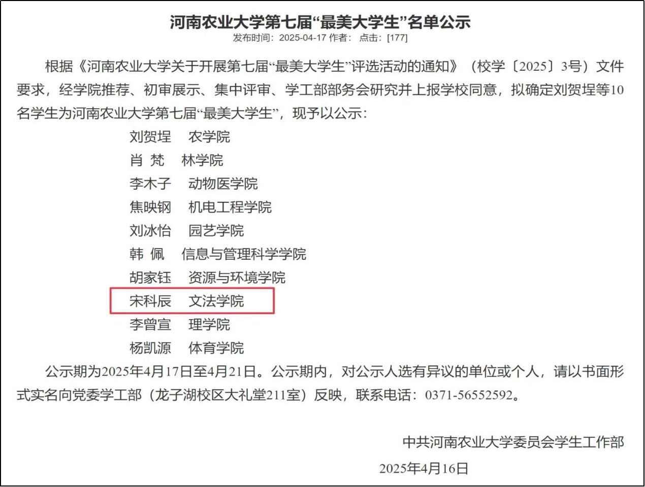 此外,h漫 宋科辰同学在学校众多优秀学子中脱颖而出,荣获h漫 第七届“最美大学生”称号。宋科辰同学在学业、社会实践、志愿服务等方面均有突出表现,他以实际行动践行着当代大学生的责任与担当,为学院增添光彩。