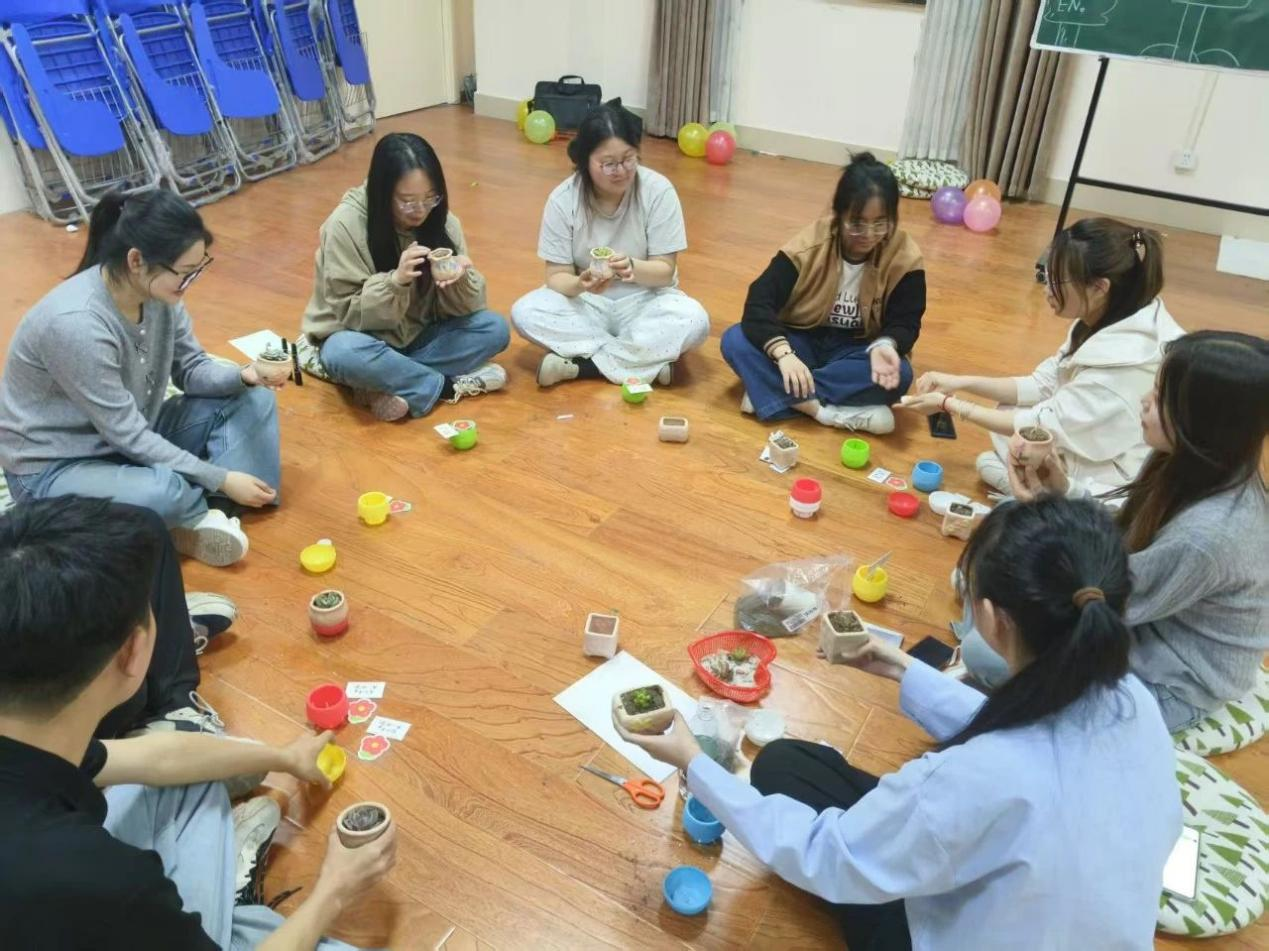 社会工作专业研究生、本科生联合举办的2025年第一期“阳光象牙塔”园艺减压小组活动在社会工作实验室顺利开展。此次活动面向本校学生,旨在助力大家减压,以乐观心态面对学习生活。
