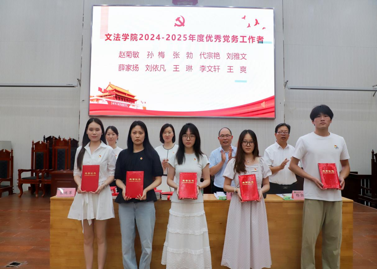活动在庄严的国歌声中拉开帷幕。随后,李伟院长宣读了《中共文法法院委员会关于表彰先进党支部、优秀共产党员、优秀党务工作者的决定》。其中,行政管理系教工党支部、本科生第四支部荣获先进党支部,韩宁等14名优秀共产党员及毋晓蕾等11名优秀党务工作者获得表彰。此次表彰不仅是对先进集体和个人的肯定,更是激励全院党员以他们为标杆,在工作和学习中践行初心使命,发挥先锋模范作用。